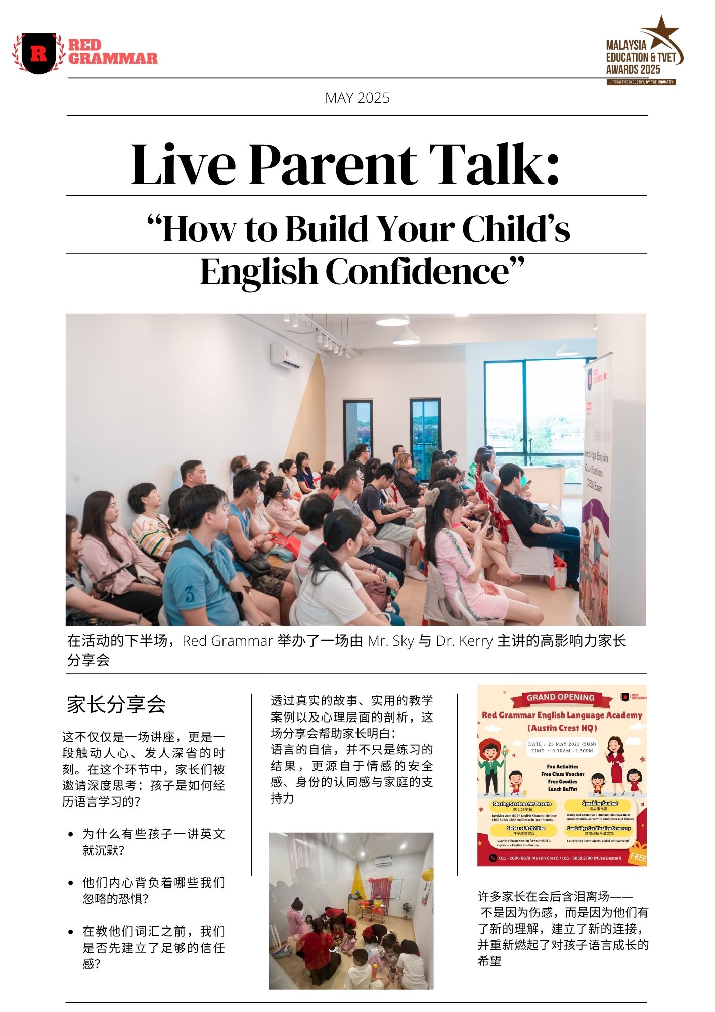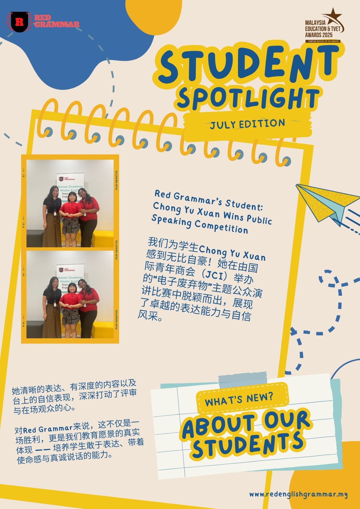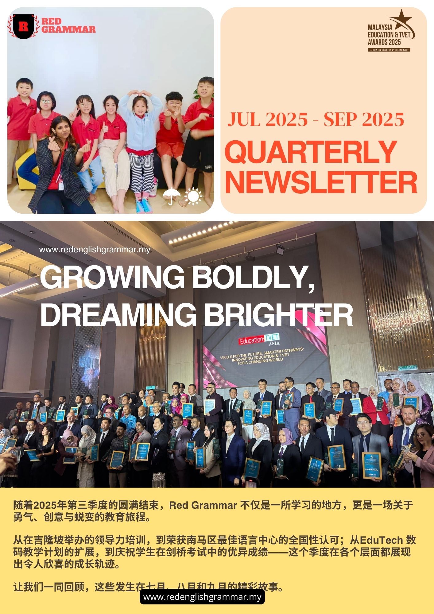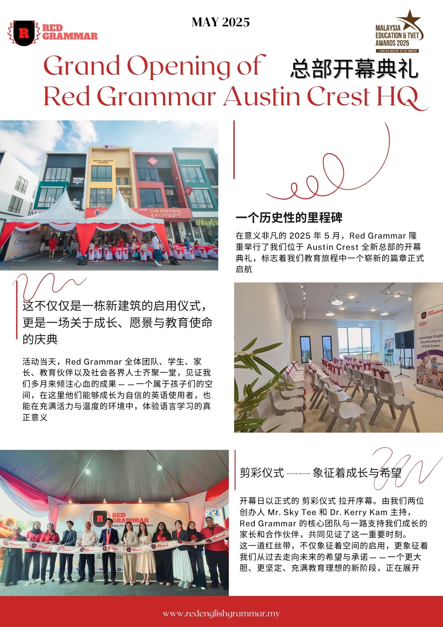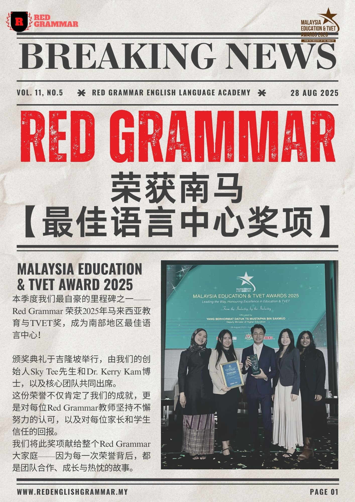 我们欣然宣布 —— Red Grammar 英语语言学院 荣获 2025 年 META(Malaysia Education and TVET Awards) 颁发的 「南马区最佳语言中心奖(Best Language Centre – Southern Region)」!
