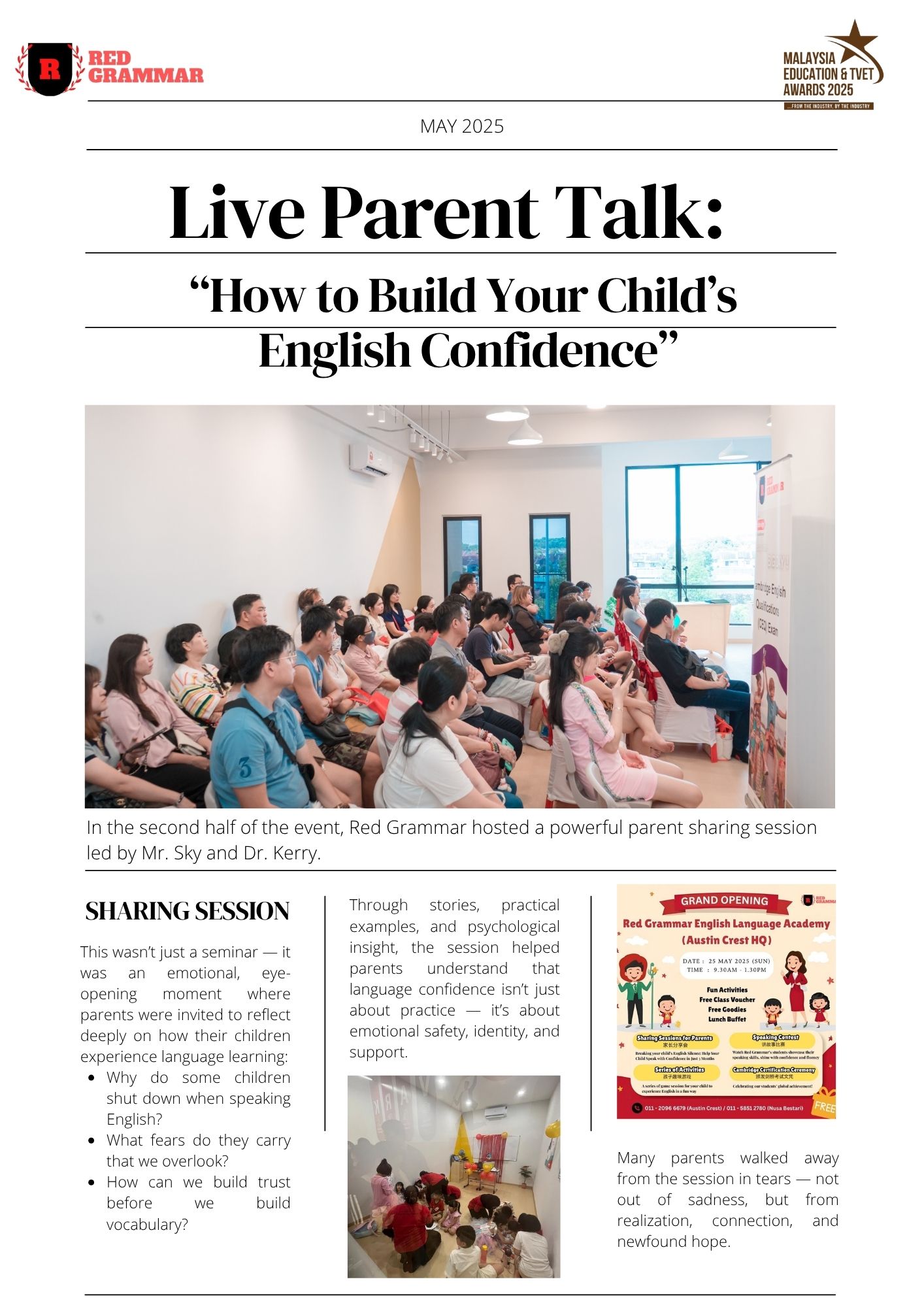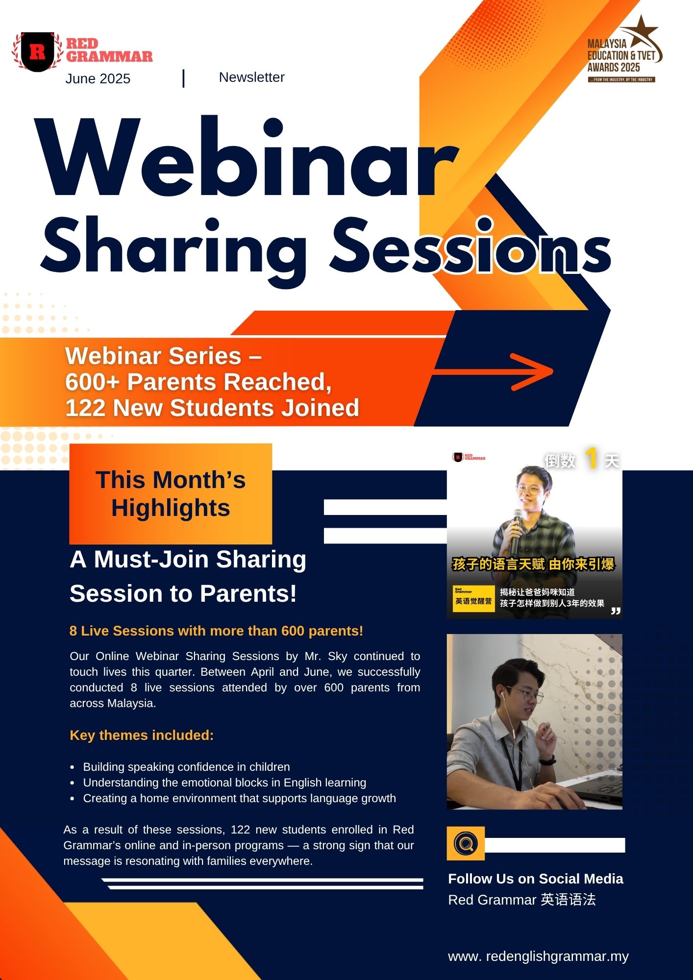 We are thrilled to announce that Red Grammar English Language Academy has been honoured with the Best Language Centre (Southern Region) award at the 2025 META (Malaysia Education and TVET Awards)!