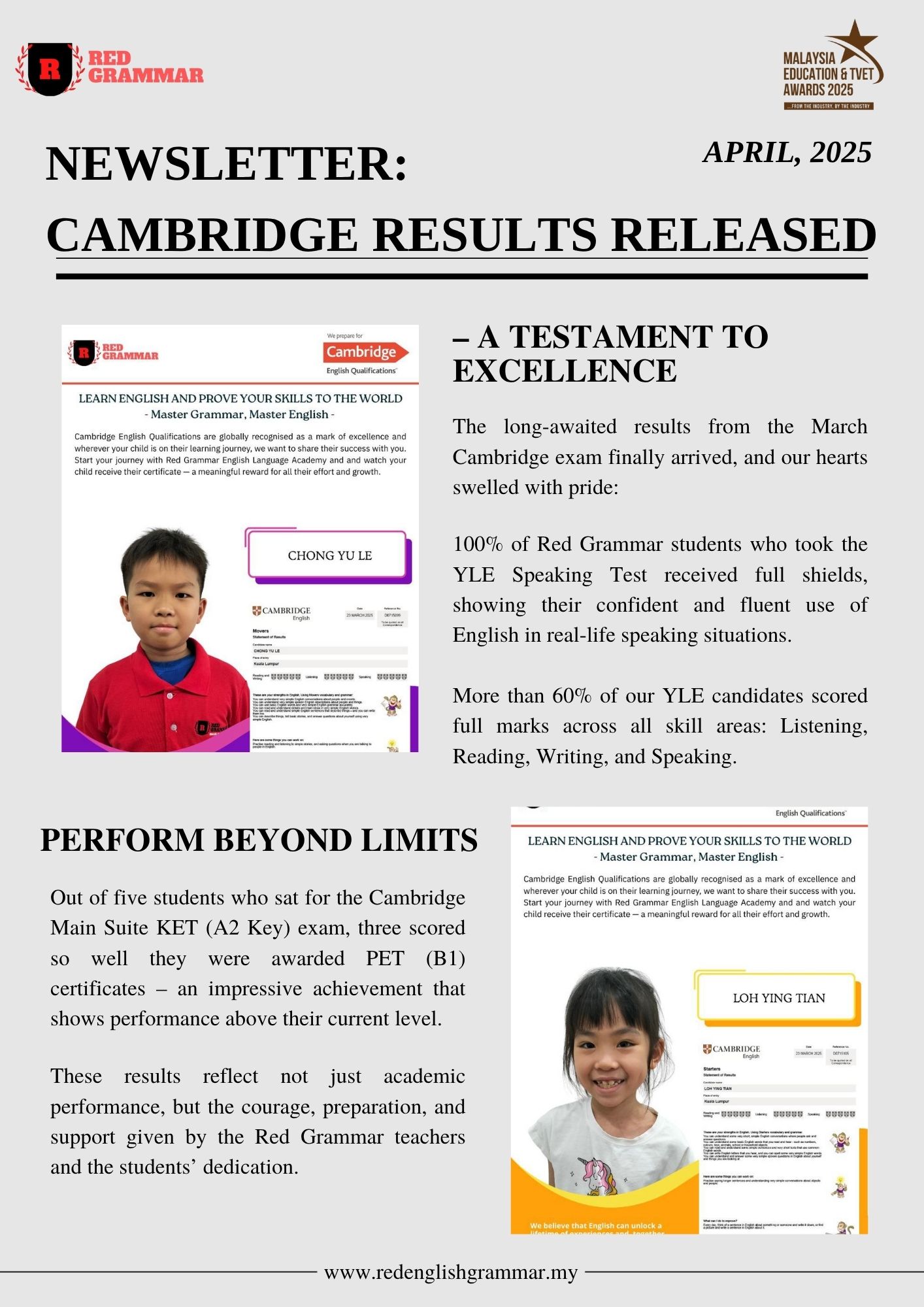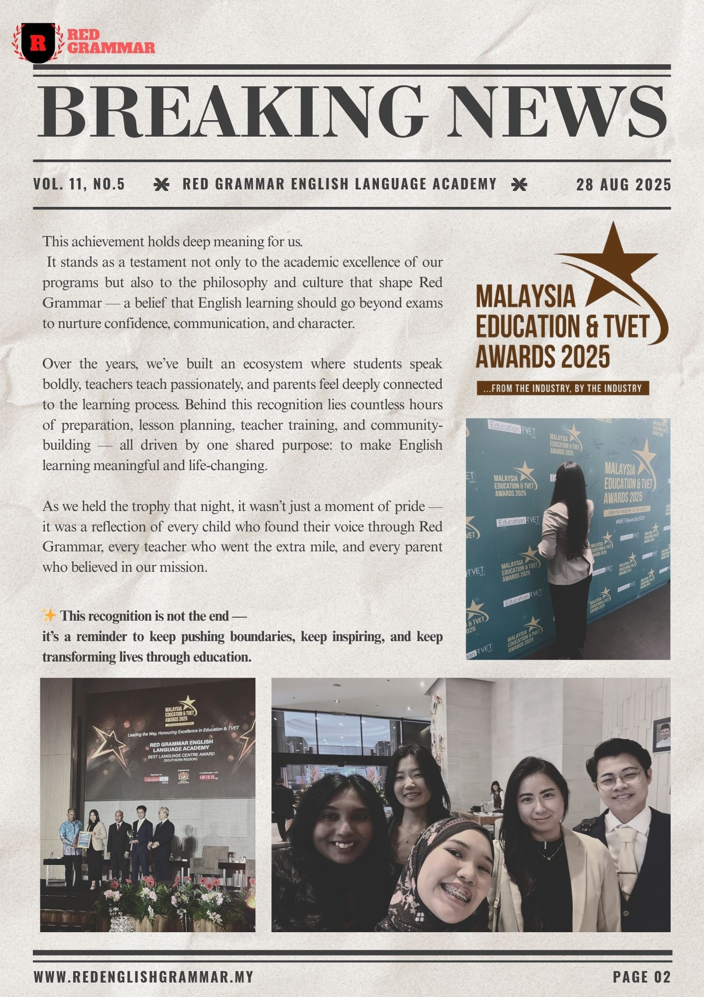 🏆 Red Grammar Wins 2025 META Awards — Best Language Centre (Southern Region)