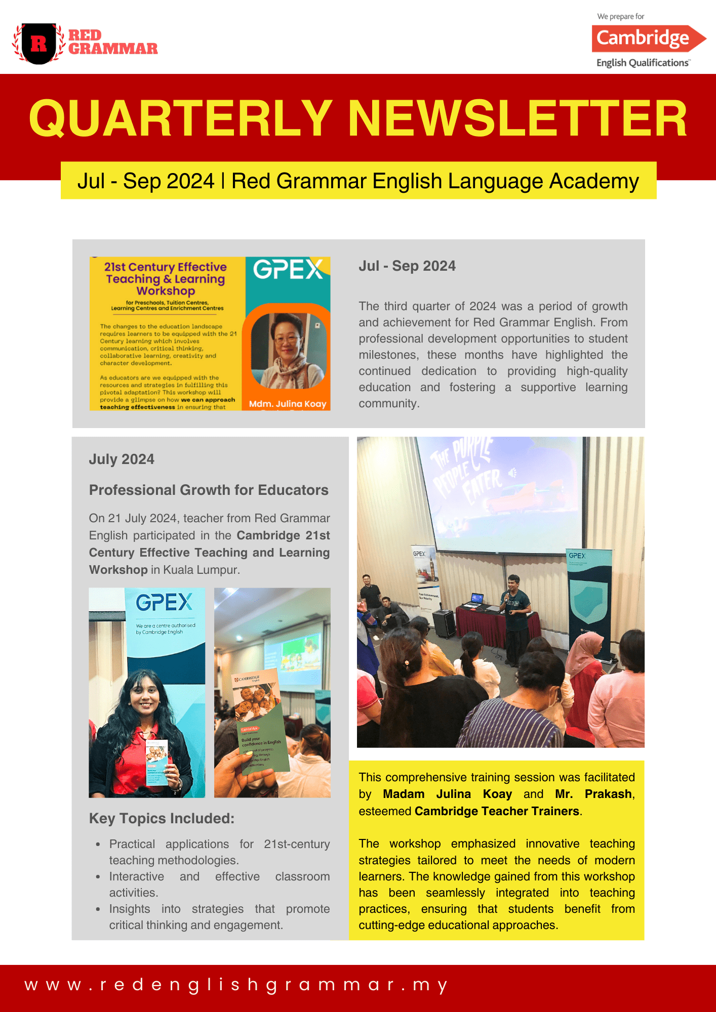 Stay updated with the latest happenings, achievements, and exciting developments at Red Grammar in our quarterly newsletter (Jul'24 - Sep'24)!