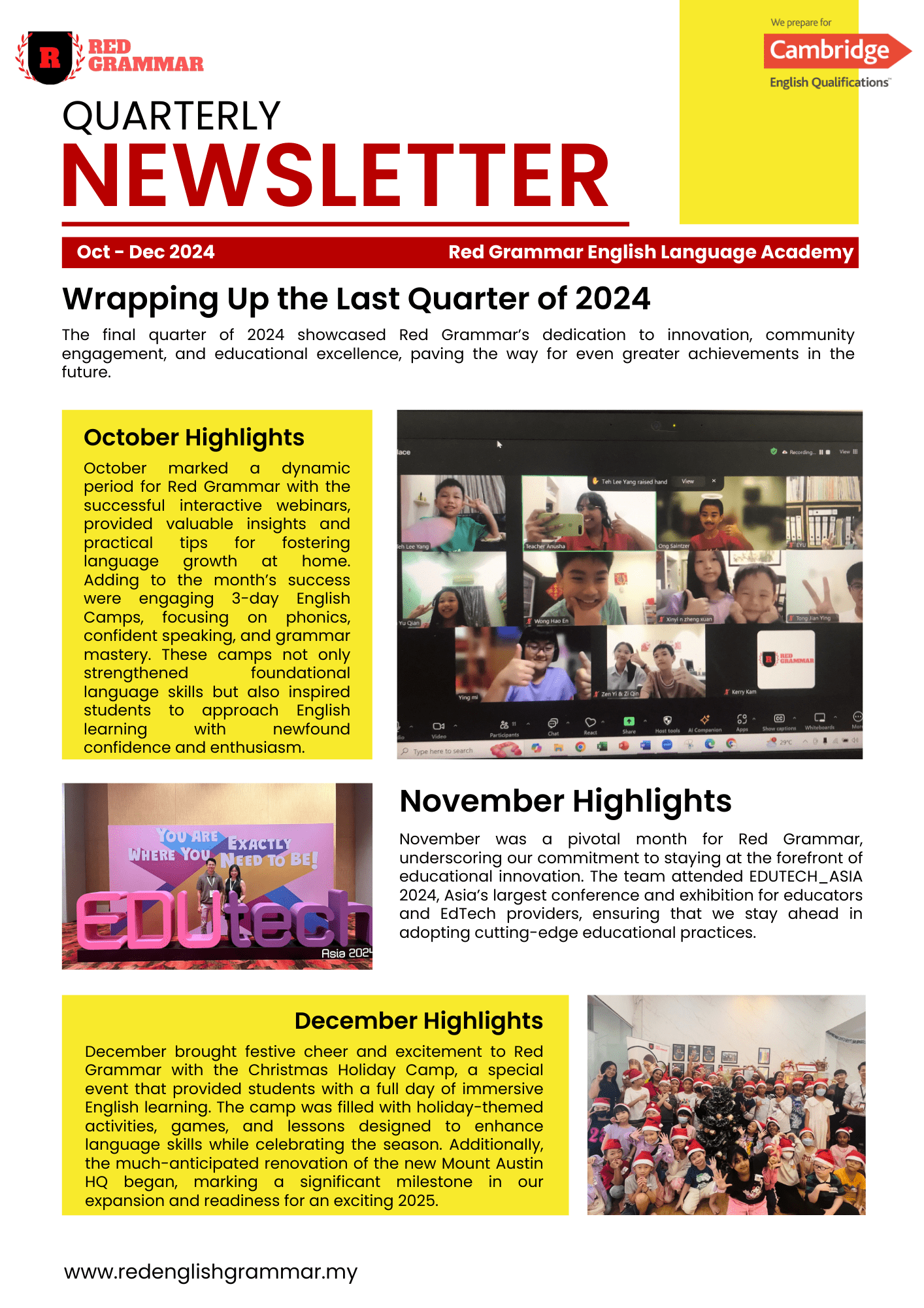 Stay updated with the latest happenings, achievements, and exciting developments at Red Grammar in our quarterly newsletter (Oct'24 to Dec'24)!